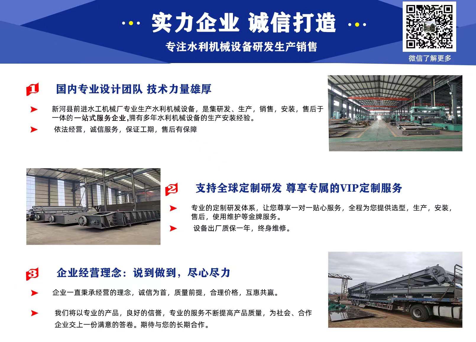 前進水工優(yōu)勢:具有專業(yè)研發(fā)團隊,精湛的制造工藝,嚴謹?shù)臋z驗技術,完善的售后服務